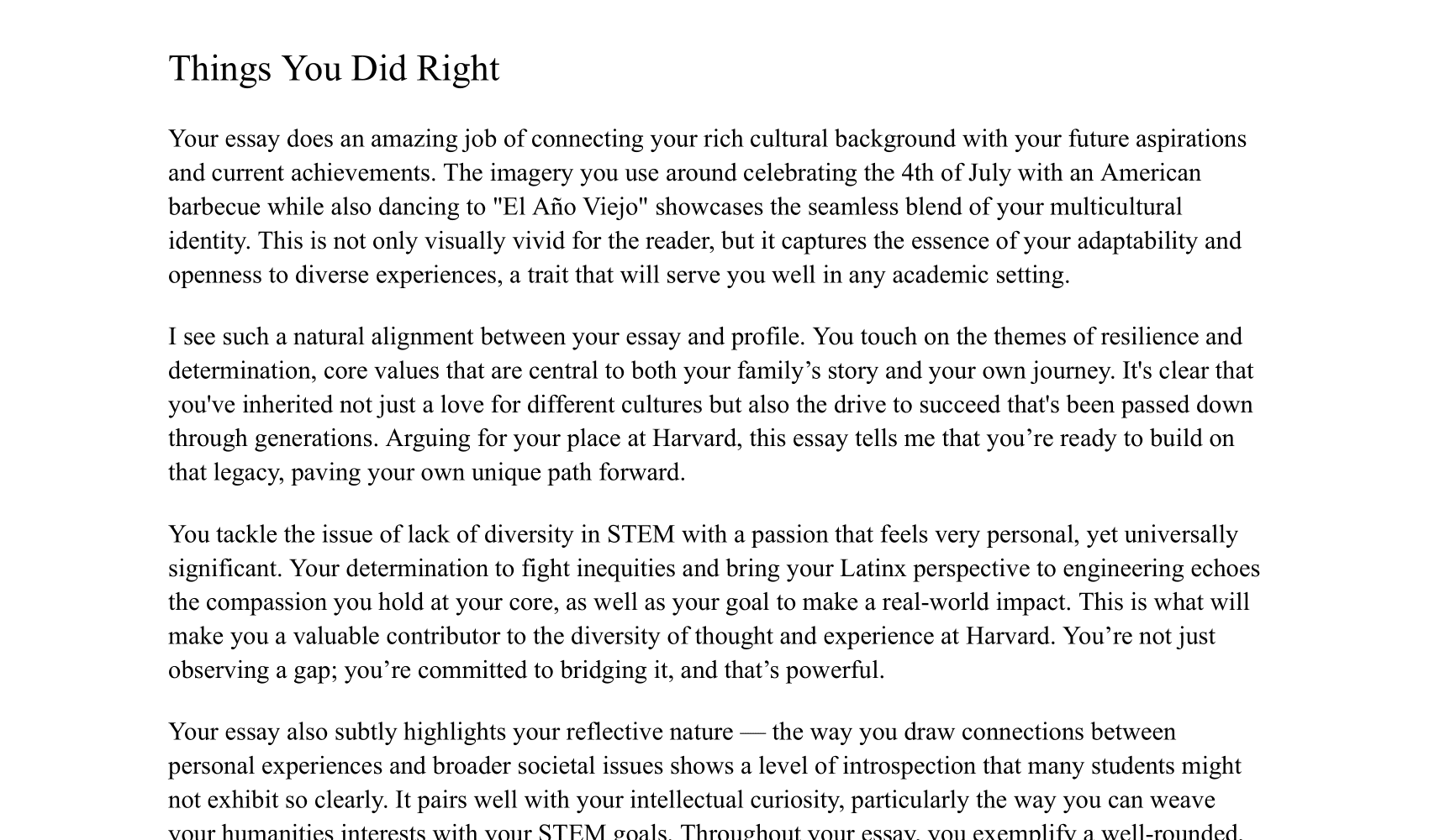 Our feedback is developed using the latest admissions standards combined with detailed criteria we've developed based on professional writing standards. We are updated for the 2024-25 application season.